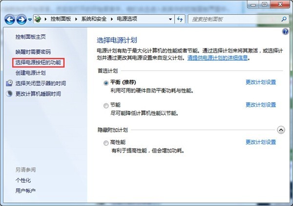 3、 接着是在界面左侧找到“选择电源按钮的功能”选项,点击它。