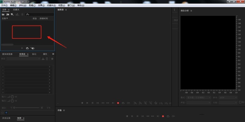 1、首先在电脑中打开AU软件,点击左上方区域,将需要的音频导入。