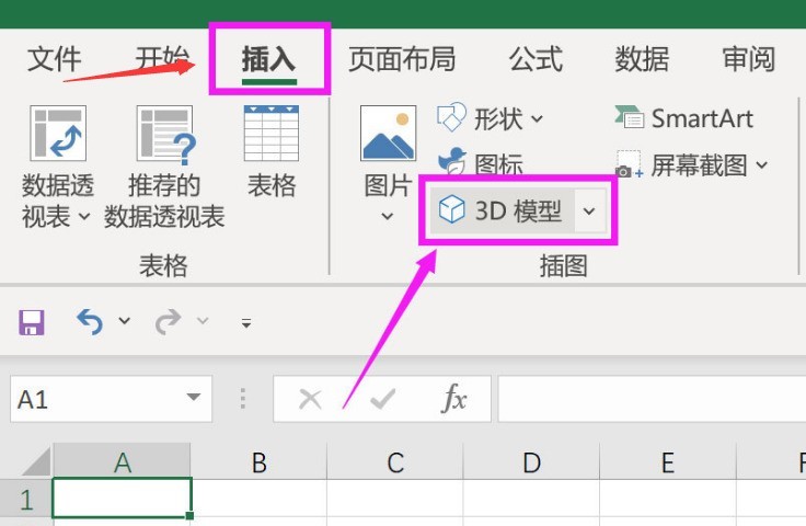 2.然后,在上方的插入菜单中,点击打开3D模型窗口