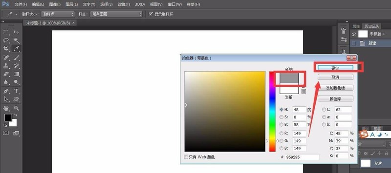 我们点击左侧工具栏的背景色,设置背景色为灰色,按快捷键ctrl键和delete键填充背景图层。