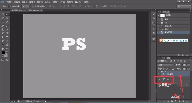 我们选中图层面板的文字图层,将它拖动到面板右下方的新建图层图标上,即可复制一个文字图层。