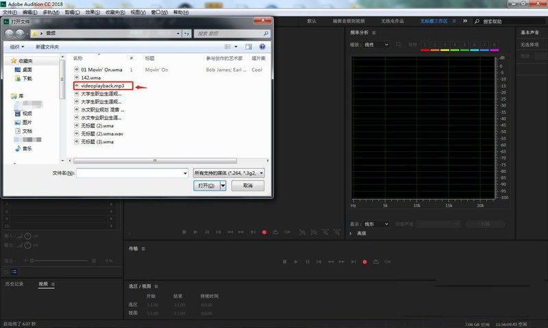 在弹出的导入文件窗口中,选择需要的音频文件,然后点击打开。