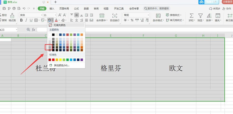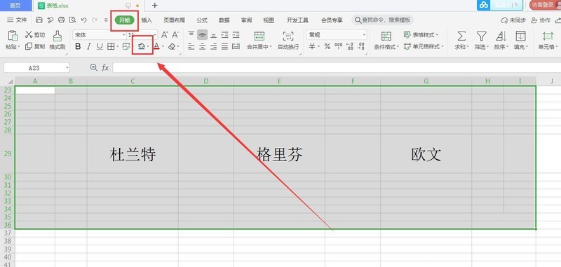 选中一大块区域,点击“开始”下面的颜色填充图标;