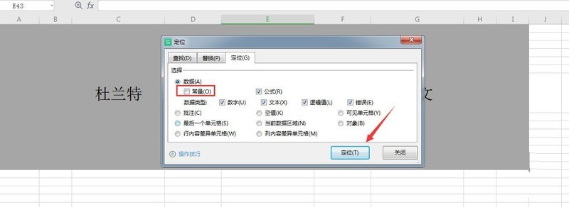 按键盘快捷键“ctrl+G”打开定位窗口,勾选“常量”,点击“定位;”