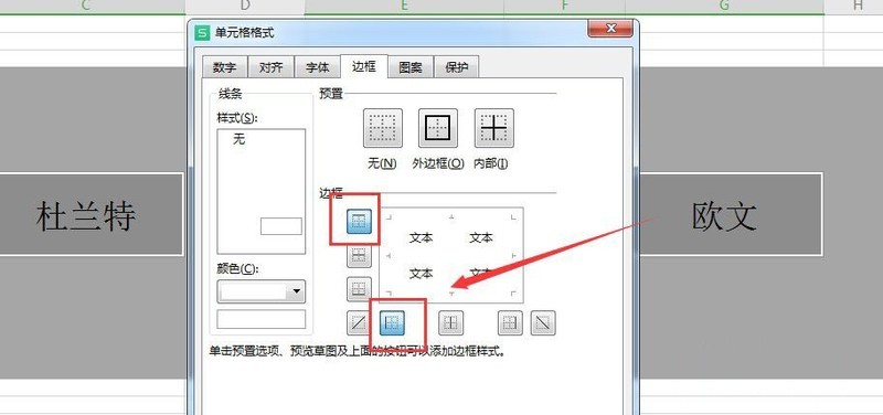 然后选择“上边框”和“左边框”;
