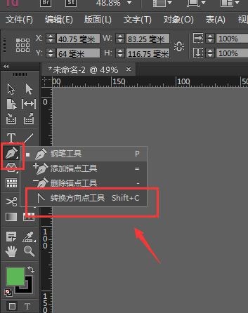 打开工具栏中的钢笔选项栏,选择其中的转换点工具,如图