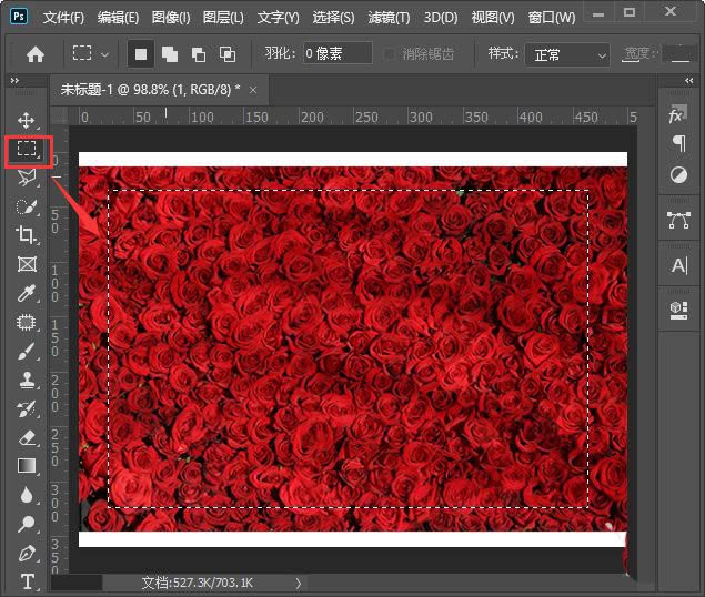 接着,我们用【矩形选框工具】框选中图片需要的部分,如图所示。