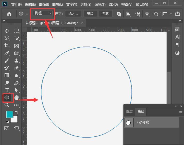 我们点击【椭圆工具】画出一个圆形【路径】,如图所示。
