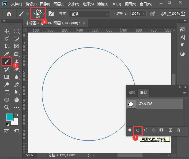 接下来,我们删除掉路径上原来的图案,重新【用画笔描边路径】,如图所示。