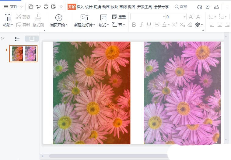 我们现在看到花朵的图片上面,已经添加上蒙层的效果,如图所示。