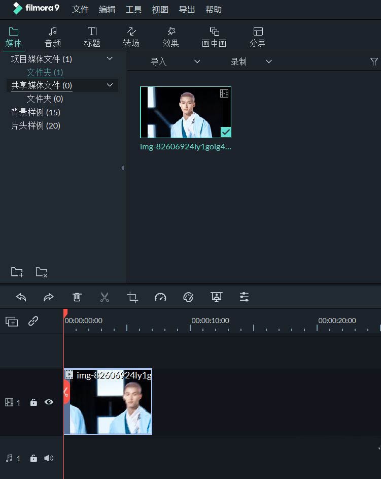 可以看到此时的素材在画面的正中间。