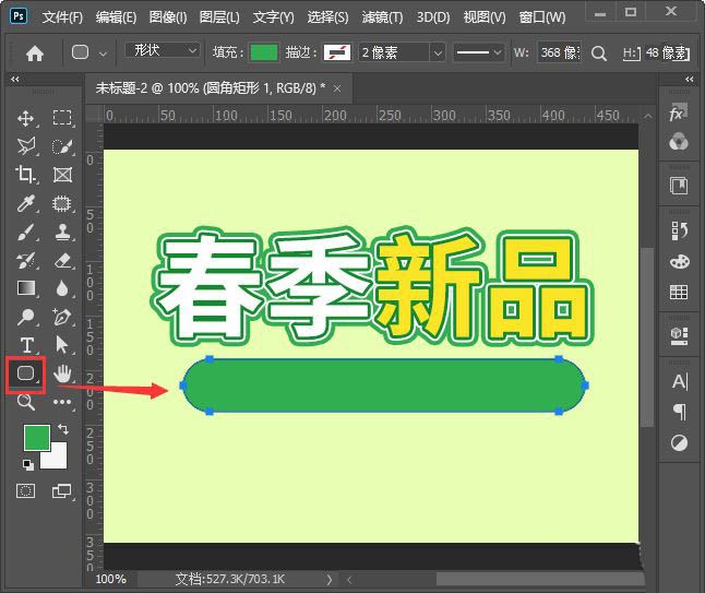 接下来,我们用【圆角矩形工具】大标题的下面画出一个圆角矩形,如图所示。