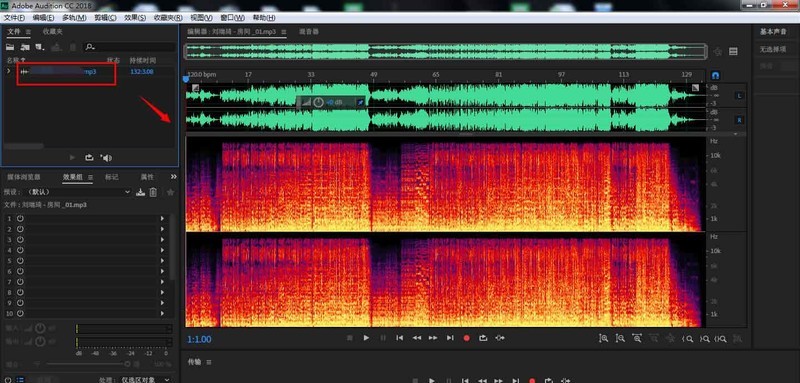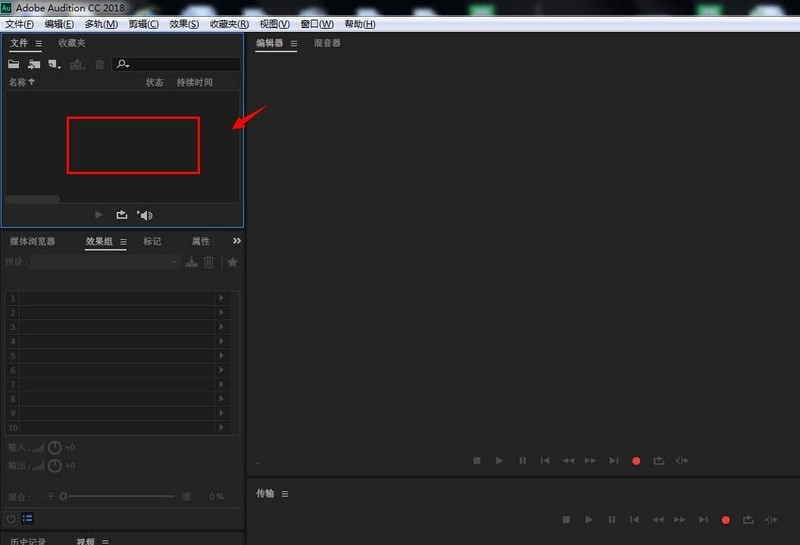 1、首先在电脑中打开AU软件,点击左上方区域,将需要的音频导入。