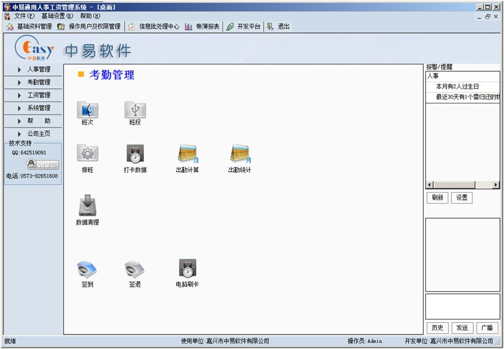 实用灵活可扩展,小到菜单导航图、表格样式、皮肤界面,大到人事工资审批单据、业务流程、报表查询,一切皆可DIY,您的专属人力资源管理系统。最强大的人事考勤、工资管理系统之一;免排班,自动识别班次,两班倒班次,无需考虑车间请假换班;工资方案灵活多样,提供50列数值10列文本,支持13月份工资,支持数据导入导出,工资计算轻松快速!大型数据库存储,高速、安全、稳定。