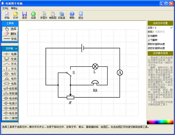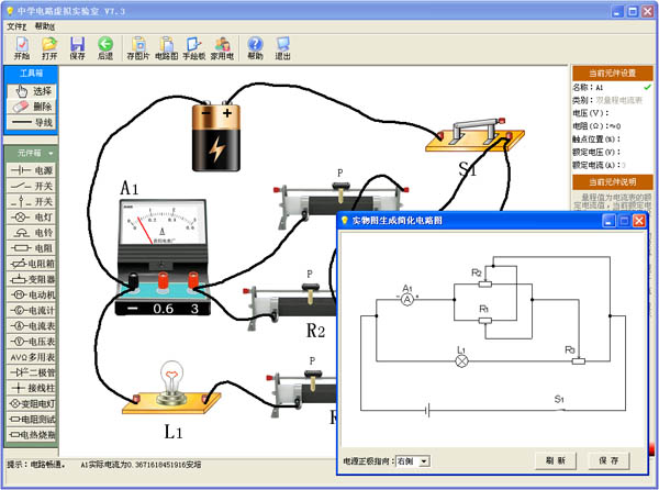 本软件为免安装绿色软件,无插件,解压后双击即可运行。为中学电路实验的仿真模拟软件,能象真实实验一样随意连接试验元件和导线,有领先的画标准电路图功能,用于串并联电路以及各种复杂电路教学和学习,能增强中学生学习兴趣和效率,亦可用于幼儿启蒙教育或作益智游戏。