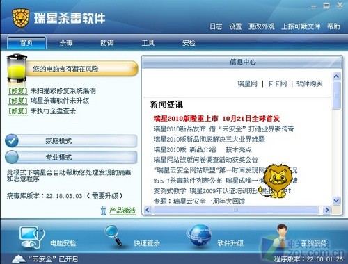 瑞星2010上网本杀毒软件(免费6个月)