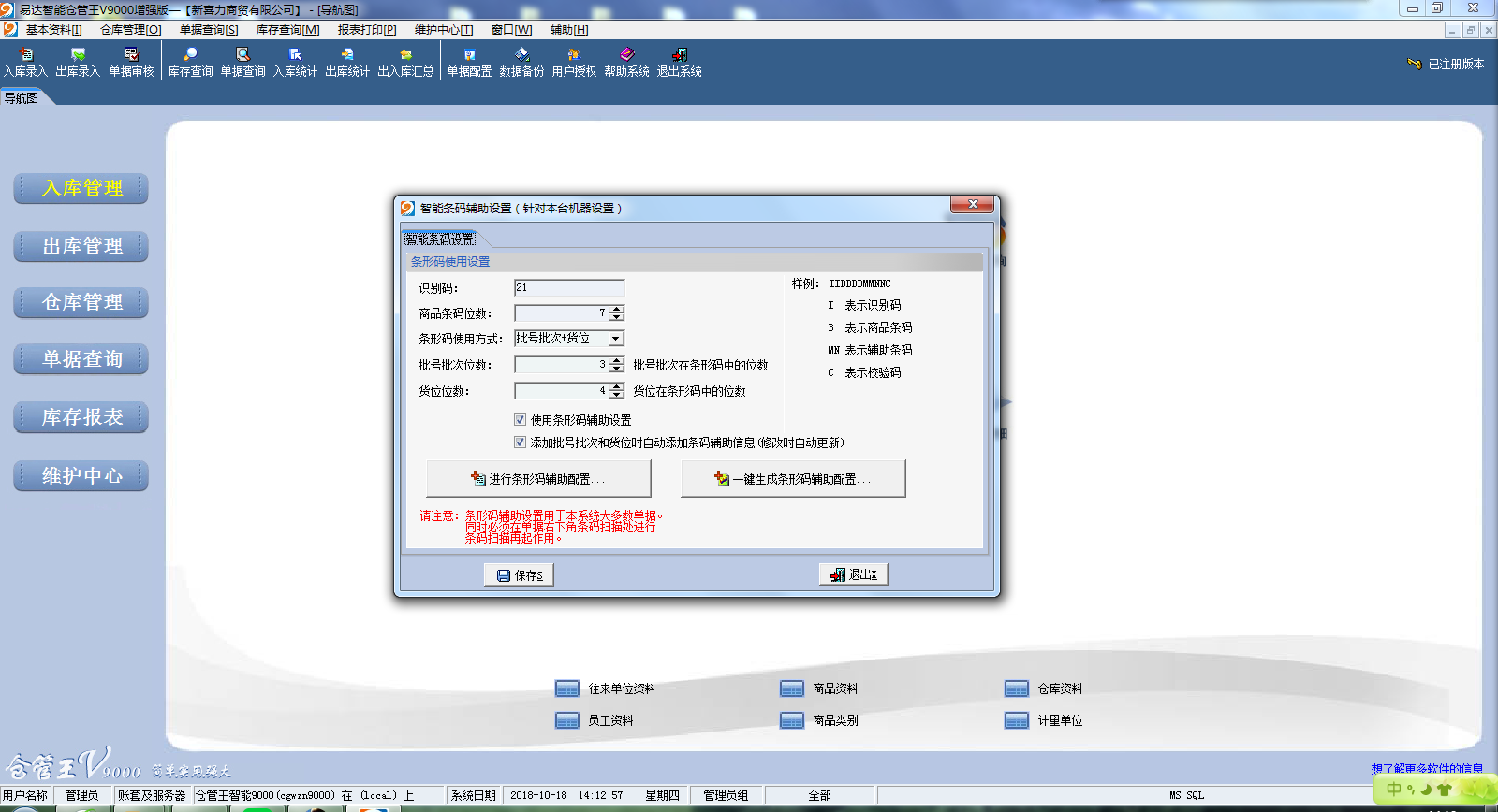 智能仓管王纳入智能条码货位识别系统和货位灯光标识系统,入库时智能生成货位识别条码,一键进行智能货位识别条码打印。通过有线扫描枪、无线扫描枪、无线盘点枪等终端设备可方便快捷的进行智能出库、盘库。