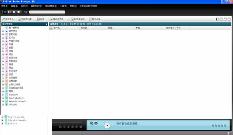 Helium Music Manager音乐文件管理工具。号称是唯一的音乐管理应用程序。可以进行音乐标签修改、曲目重命名、音乐播放、管理播放列表等操作,支持支持 MP3、WMA 等大多数主流音乐文件格式。不仅能对自收集音乐进行分类管理、快速搜索,联网浏览唱片专辑,还可以刻录音乐文件等,可谓全能贴心的音乐管家。