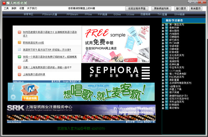 懒人网络电视是国内P2P网络电视播放器的集成。 由于国内P2P播放器市场群雄并起,用户要在互联网上观看网络电视,往往需要不断的安装很多的播放器,非常不便。