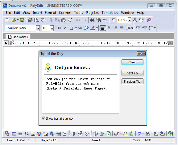 polyedit 的前身是 crypt edit,绝对是一款强大的文字处理工具,以其不足 1m 的身躯实现如此多的功能实在难得,它完全可以取代记事本和书写器,甚至在要求不高的情况下取代 word 的一些功能。它对中文的支持良好,颇强的文字排版和格式转换功能,支持多种格式文件的导入导出,插件功能,书签管理,发送文本和附件邮件,模板功能,良好的打印预览以及加密功能。