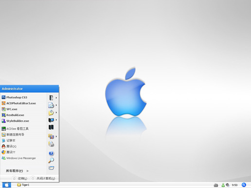 白色蓝边的仿苹果主题XP版 该主题是以有“”为背景制作的。