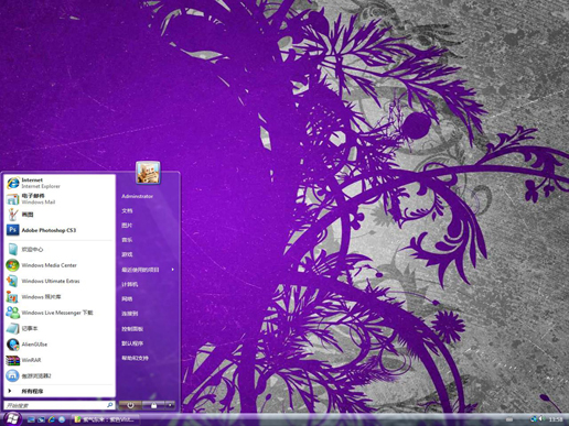 紫色花纹 windows主题 VISTA版 该主题是以有“紫色花纹”为背景制作的。