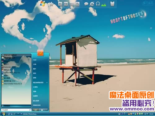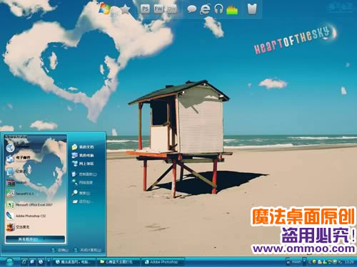 原创xp、vista、windows7通用版心舞蓝天电脑桌面主题,主题用蓝色亮丽的质感表现海边的浪漫生活,心型云朵更是这款主题的最大亮点。