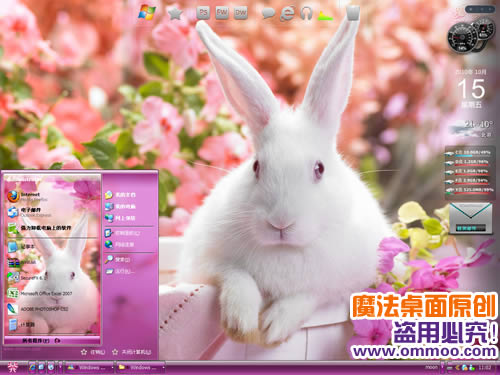 花园里的彼得兔电脑桌面主题,选用彼得兔作为整款主题的壁纸,在鲜花的映衬下,彼得兔显得更加淘气可爱。整款主题制作精美,壁纸与开始菜单搭配和谐,还有登陆界面哦~