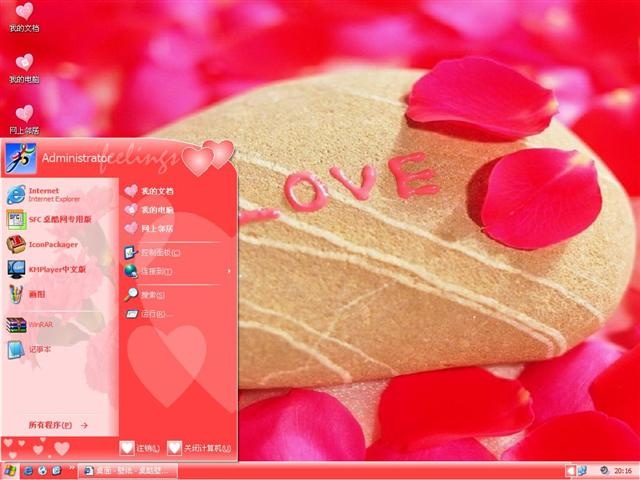 情意绵绵主题内含桌面主题,桌面图标,鼠标指针,桌面壁纸。一键安装,无插件无改主页等附加设置,安装好后,弹出预览的时候点击应用即可。