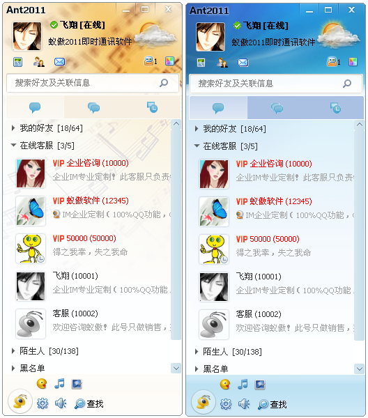 蚁傲2011即时通讯软件,它集成消息预见、魔法表情、语音、视频沟通、远程协助、文件传输、在线客服、免费消息漫游等功能。