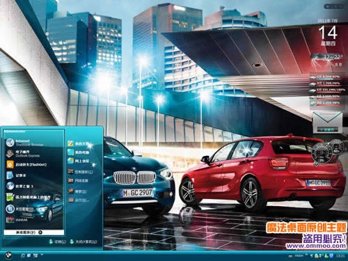 魔法桌面宝马1系电脑桌面主题是一款xp、win7双系统主题,用宝马官方最新1系大片做壁纸,恢弘大气的城市背景,绚烂的灯光下两款靓车牢牢吸引人的眼球。