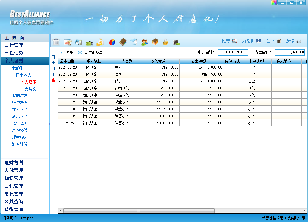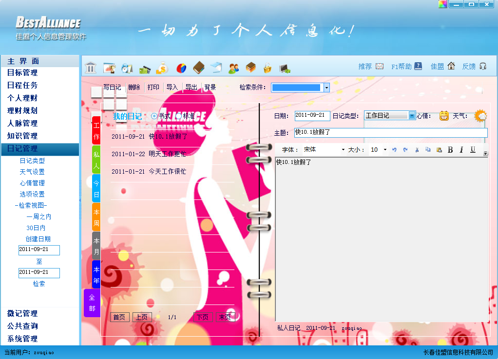 佳盟个人信息管理(BaPim)普及版是一款经“360安全认证”的个人信息管理系统,在设计上采用国际上先进的MBO目标与GTD时间管理理念
