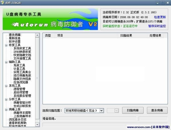 Autorun病毒防御者软件是一款专门针对流行的U盘病毒开发的查杀程序。Autorun病毒防御者软件独有的精确查杀与扩展查杀双查杀机制能够彻底清除病毒和木马的相关文件和注册表项,不留残余。配合独特的启发式查杀引擎,对未知U盘病毒拥有90%以上的识别率。 此外,软件还有U盘病毒免疫、系统修复、残余清理、病毒分析、系统诊断、顽固目录删除、应急浏览器、隐藏文档恢复、隐藏目录恢复、U盘解锁、U盘软件写保护等一系列完整的辅助工具,以及进程管理、启动项管理和系统服务管理等系统工具,能够让您彻底远离U盘病毒的困扰。 本软件绿色、免费,程序小巧,查杀和清除能力强。是您查杀U盘病毒的好助手!