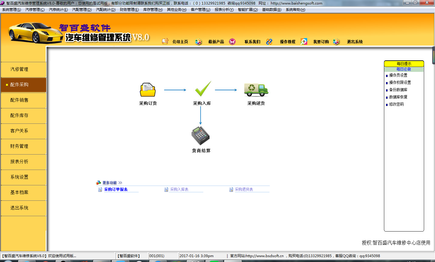智百盛汽车维修管理系统是一款专业易用的汽车维修行业管理系统,该汽车管理软件包含汽车客户管理系统、汽车维修简易管理系统,零配件库存管理系统等子模块,是难得的汽车维修行业管理系统。