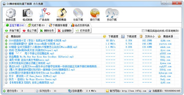 DJ舞曲智能下载器是广场舞必备神器。网络上音乐资源浩如烟海,针对性不强。如何能准确快速的搜索到DJ舞曲。这里小编给大家带来了一款疯看DJ舞曲网络音乐下载器(疯看DJ舞曲下载工具),大家可以通过它来轻松下载各种DJ舞曲音乐。软件功能强大,能够帮助您解析各大主流DJ舞曲网站的音乐地址,方便您来下载收藏。有了这款软件就再也不用在线试听了,非常好用。软件支持 djkk dj97 dj527 9ku ik123 yaotou dj520 36dj 等多个舞曲网,智能解析舞曲下载地址,智能转换格式,使用迷你迅雷P2P快速批量下载。