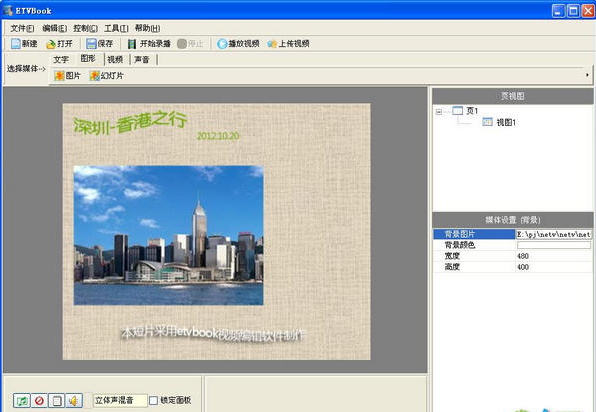 ETVBook是一款多功能整合视频编辑器,它功能非常丰富,广泛应用于视频娱乐、视频解说、播客、网络教学、在线电子商务、电子相册等领域。用户可以通过etvbook 轻松地把多媒体资源(图片、音乐、字幕、电影、摄像头、麦克风)录制成视频,并能向网络进行在线直播。需要的朋友么赶快下载吧。