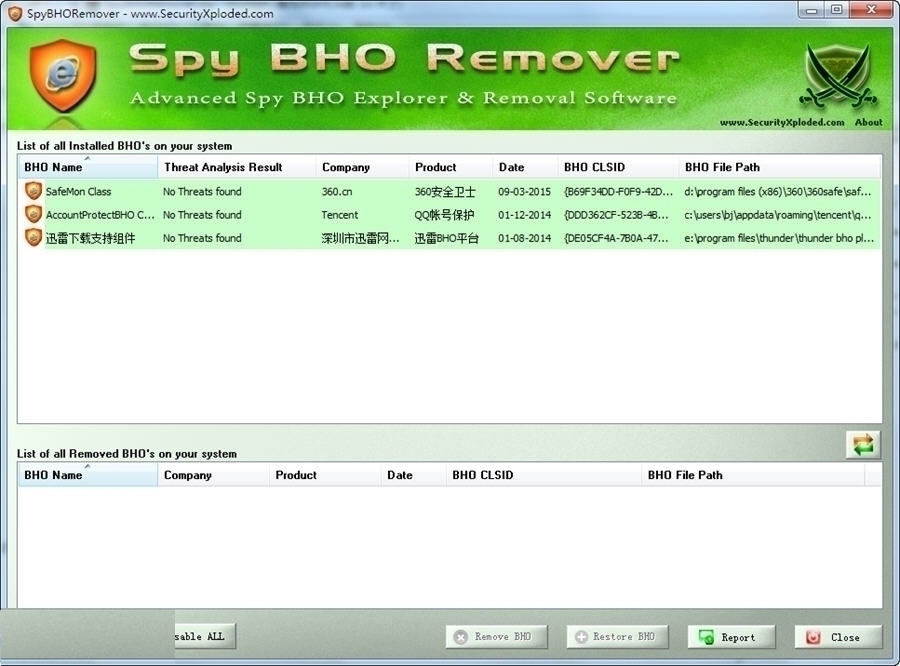 SpyBHORemover可以帮你删除流氓软件对浏览器的劫持。
