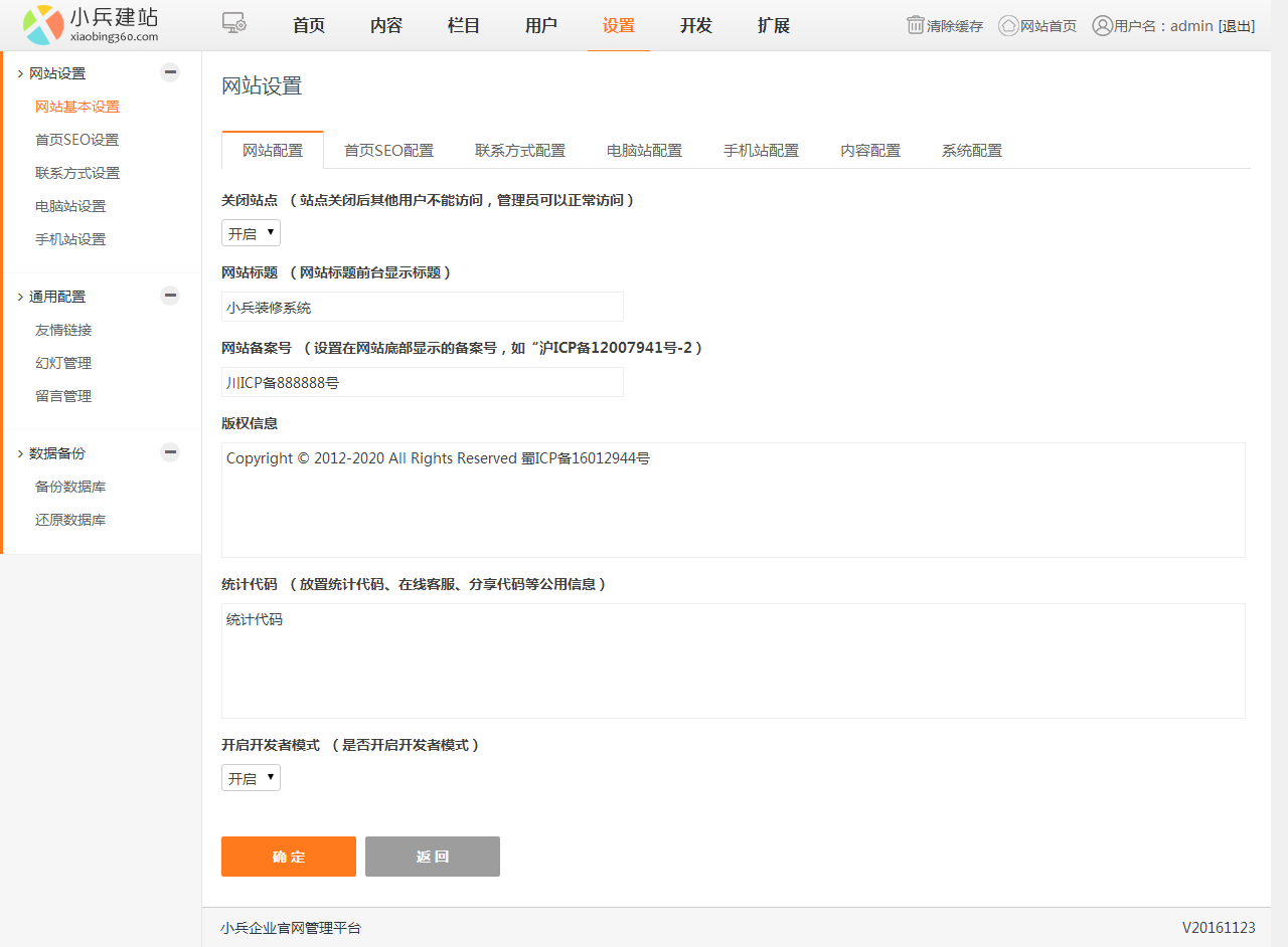 小兵建站装修系统CMS v2.0,国内简单易用的网站管理系统!永久免费开源! 公司研发小兵建站装修系统CMS v2.0(内容管理系统),基于OneThink开源框架,和超过300家以上装修公司进行了深度的合作与需求沟通,经过一年的时间的研发,打造了国内简洁好用、易于操作的网站管理后台。