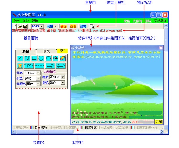 小小绘图王是一款免费的cad绘图软件,主要用来快速的绘制一些比较简单的图,虽然比较简单,但是小小绘图王官方版还是内置了大量的工具,可以快速的绘制出各式各样的CAD图,相比较来说更加简单,上手既会,适合那些新手和需要快速制图的用户使用。