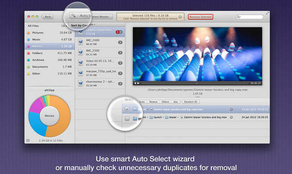 重复文件查找工具Gemini for mac是一款由MacPaw出品,帮助你在 OS X 系统中找出重复文件,并清理删除给电脑腾出更多硬盘空间的实用工具,重复扫描特定的文件夹,简单容易。