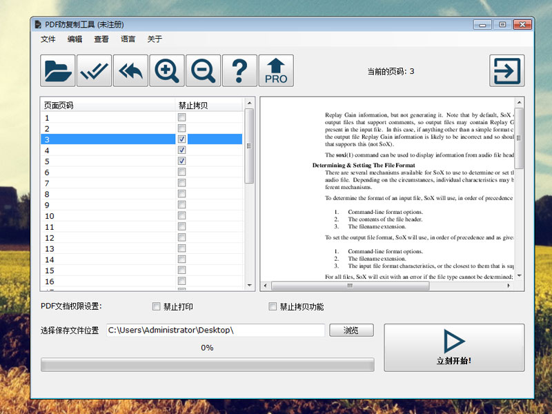 PDF防复制工具不同于一般的PDF加密软件只是增加了PDF的权限设置,很容易被一些破解工具或者在线服务直接解密掉。PDF防复制工具是将PDF文件的文字和图形重新解析,然后重新处理,在保持了原文件的排版和结构的前提下,使您的PDF文件只允许打开查看,不允许复制拷贝PDF内容。经过PDF防复制工具处理的PDF文件,即使使用PDF权限破解工具,也无法实现内容的复制拷贝了。