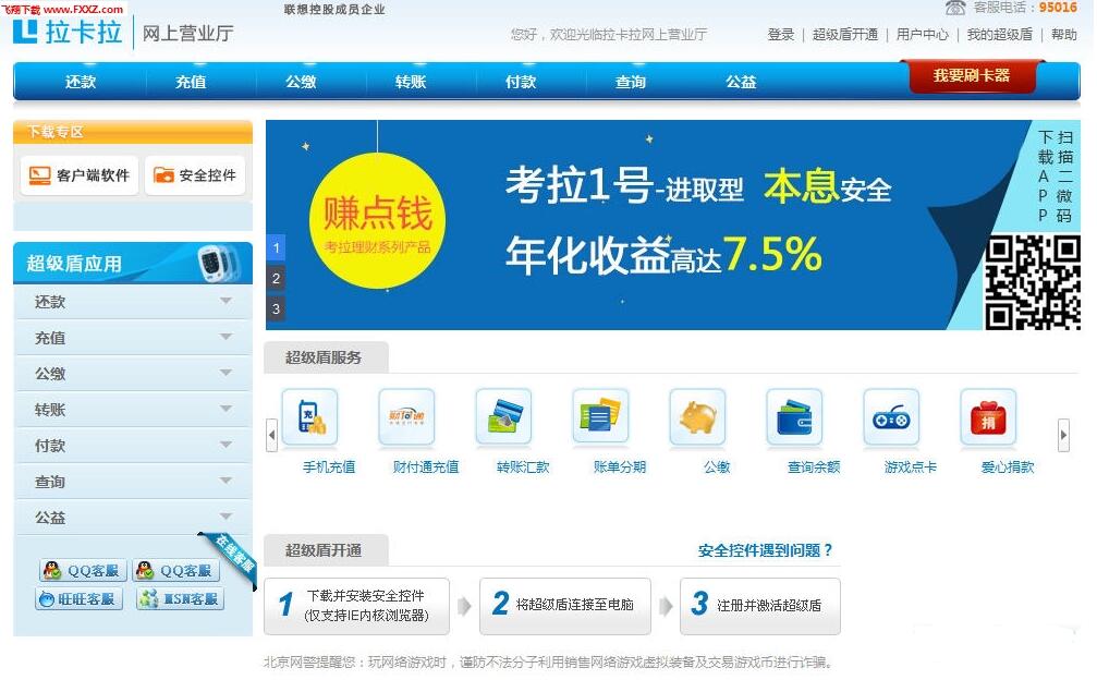 拉卡拉超级盾客户端是专为拉卡拉用户打造的一款安全控件工具。为用户提供了一个安全的交易支付环境。为您网上支付保驾护航,保证您的账户及资金安全,给生活创造更多便利;需要的朋友快下载试试吧!