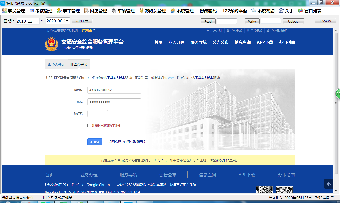 振阳驾校管理软件是由深圳市振阳软件开发有限公司针对驾校业务流程、管理特点研发出来的一款实用的专业性的驾校管理软件。系统以驾校工作重点中的招生、学员管理、考试管理、财务管理为核心,辅以教练员管理、车辆管理、电子公告、收费统计、业务情况统计报表,学习证到期提醒等功能为一体,系统实现学员“学车流程”中各环节信息的规范化管理。所有信息只需要录入一次,网络中的其他用户都可以查看到相应内容。从而减少大量重复工作、避免工作中人为因素造成的错误、减少工作中的信息孤岛、自动生成相关报表,提高信息的时效性,进而提高工作效率。系统操作简单、实用、高效。支持多分校运营。 软件初始账号(用户名:admin 密码:password)