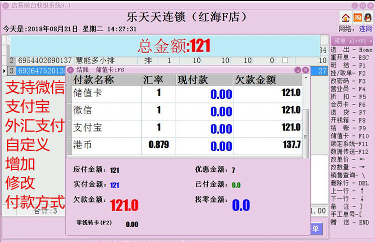 店易超市收银软件管理系统支持微信支付、支付宝支付、外汇支付;包括单机版、网络版、连锁版;支持各种电子称、盘点机、扫描枪、顾显、钱箱、小票打印机等POS设备(U口或串口都可),专业POS机、普通电脑通用。超市收银软件是一款经历了12年的软件,经过数万家用户的使用,各项功能完善、系统稳定、数据准确、报表齐全。