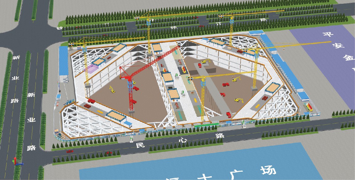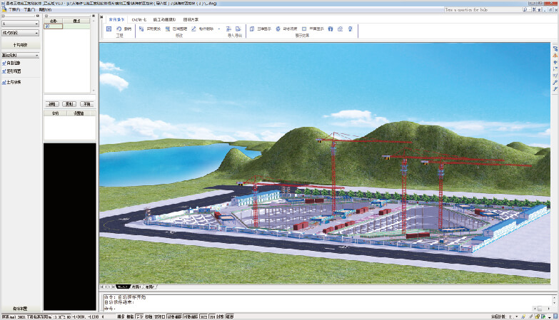 设置分阶段建模、通过总平面布置图识别转化和内置大量构件快速完成三维场布设计。