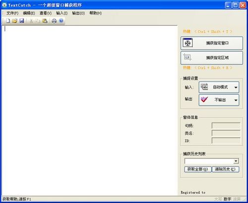 TextCatch是一个简单的用于捕获文本的小工具。它可以捕获所有Windows窗口中可见的文字,捕获文件夹结构,状态信息,消息和对话框的文本内容等。捕获结果可以被保存为ASCII或txt文本格式。