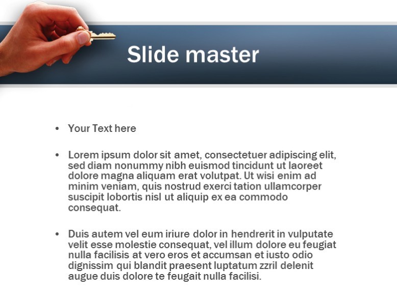 金钥匙背景PPT模板下载,提供金钥匙背景PPT模板免费下载。洁白的底图中间为蓝灰色长条,一只手拿着一把金钥匙,作为PPT模板背景图片。zol提供教育培训ppt模板免费下载。
