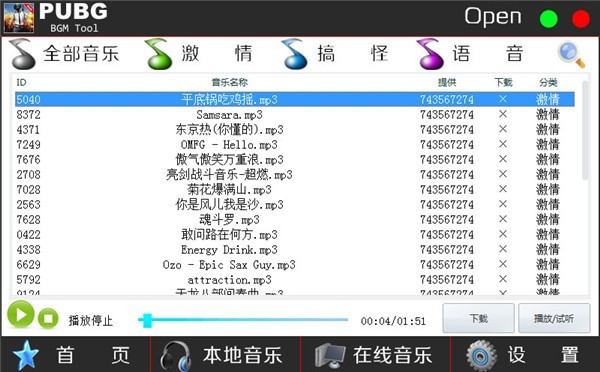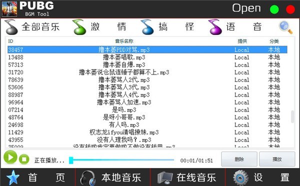 绝地求生bgm Tool是一款非常强大的bgm语音播放工具,在玩绝地求生的时候想调戏你的队友吗?PUBG BGM Tool包含了五五开语音包,呆妹语音包,李云龙,大司马,pdd等众多主播的语音包供您使用哦。