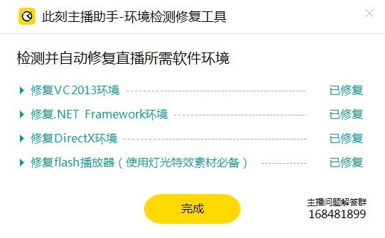 此刻直播环境修复工具是一款直播环节检测工具,.NET、DX11、VC2013、flash等系统软件是必须要齐全的,这款工具主要就是能够自动识别检测并且安装这些缺少的组件环境,帮助广大主播轻松解决直播环境不达标的问题。