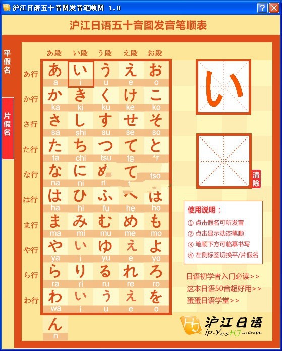 沪江日语五十音图发音笔顺图 1.0